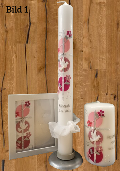 Set besteht aus Taufkerze, Taufbrief und Lebenskerze rund.
